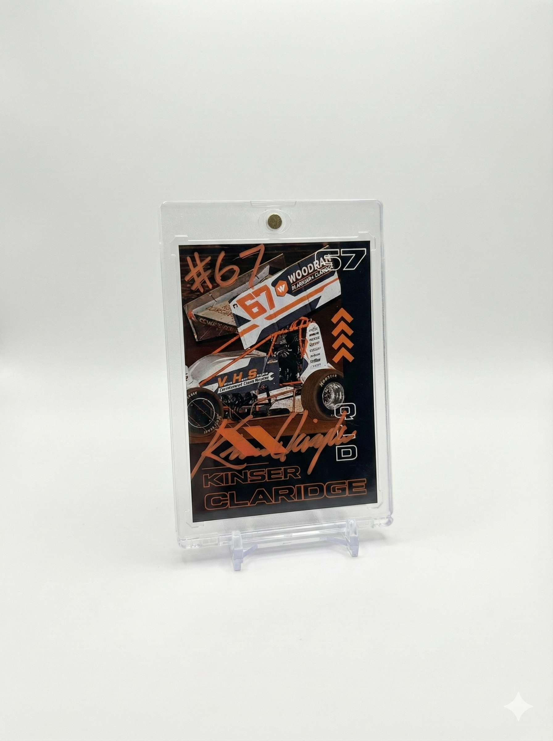 Secure your Kinser Claridge #67 trading card from the inaugural Sprintcards Series 1 release. This is a rare opportunity to grab a personally signed collector's item directly from the team.
